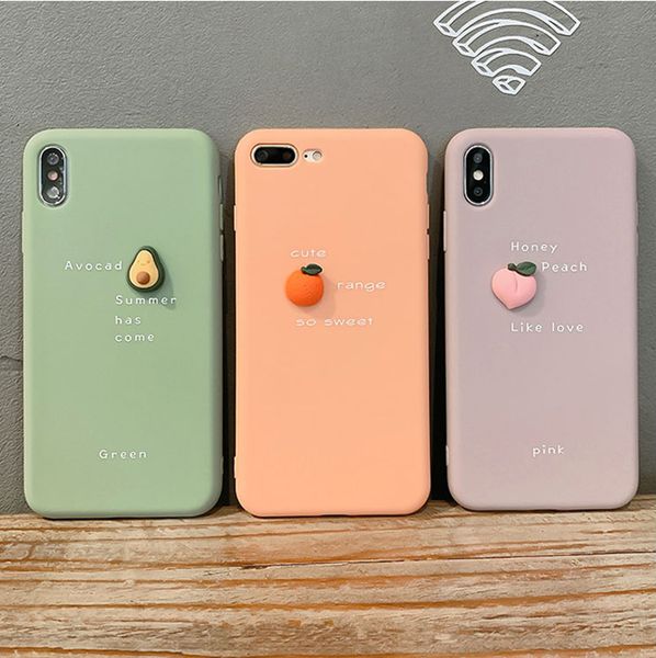 Cartoon 3d Fruit Avocado Peach Phone Case For Iphone X Xs Max For Iphone11 11pro 6 6s 7 8 P Couple Cover A3 Soft Tpu Candy Silicon Case Leather Phone